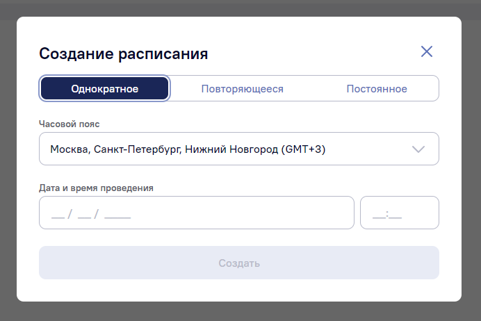Однократный тип авто-вебинара означает, что ваш комната будет запущена один раз в выбранное время.