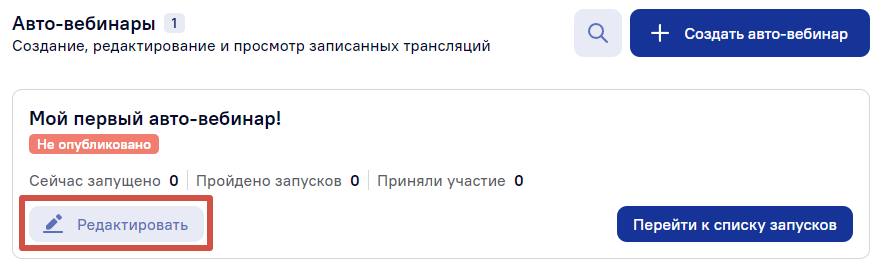 Чтобы запустить однократный авто-вебинар: