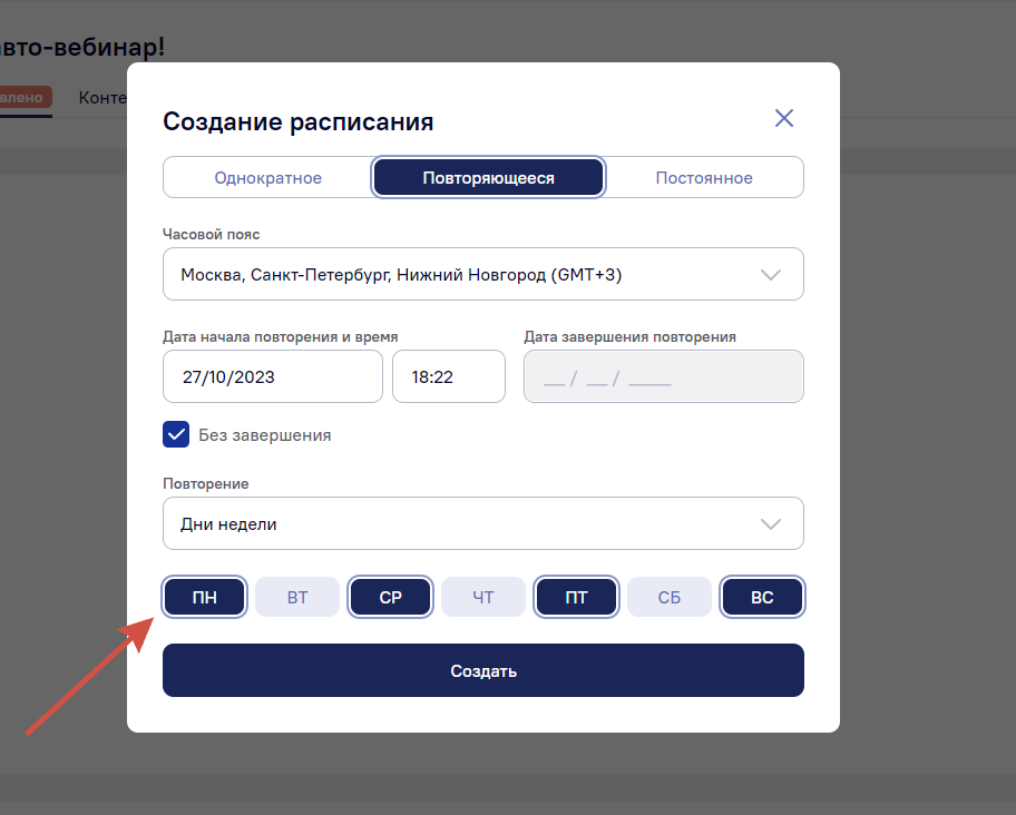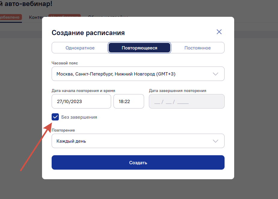 Настройка повторяющегося авто-вебинара: