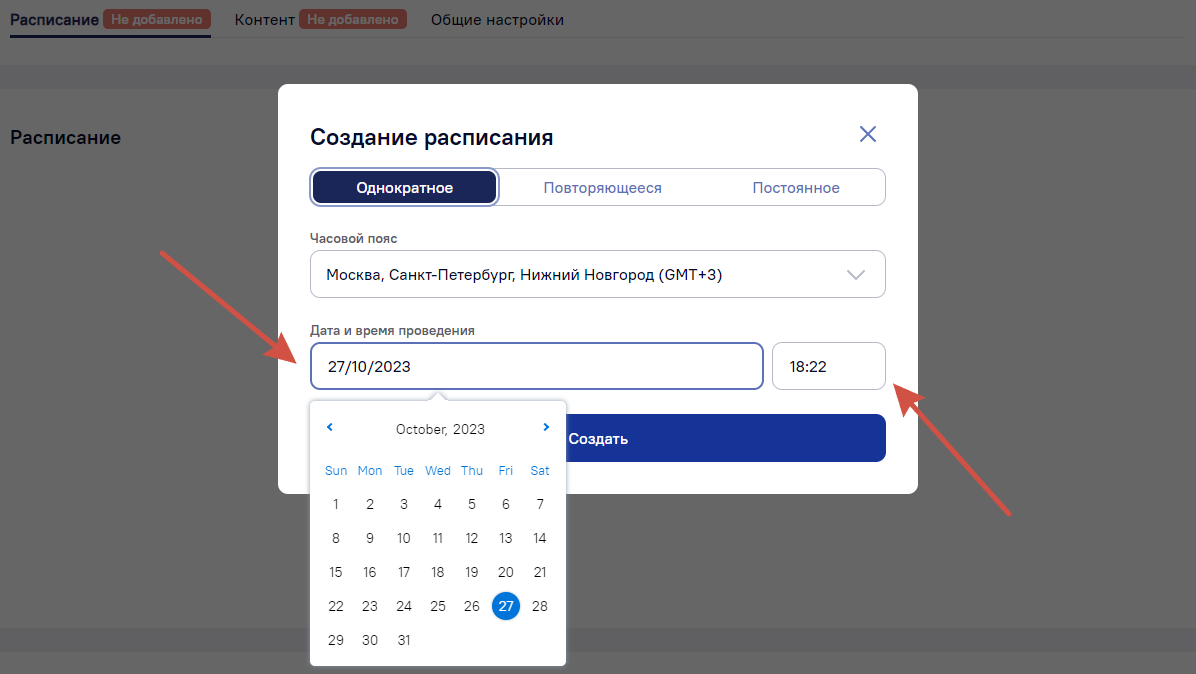 На вкладке «Расписание» нажмите «Добавить расписание».