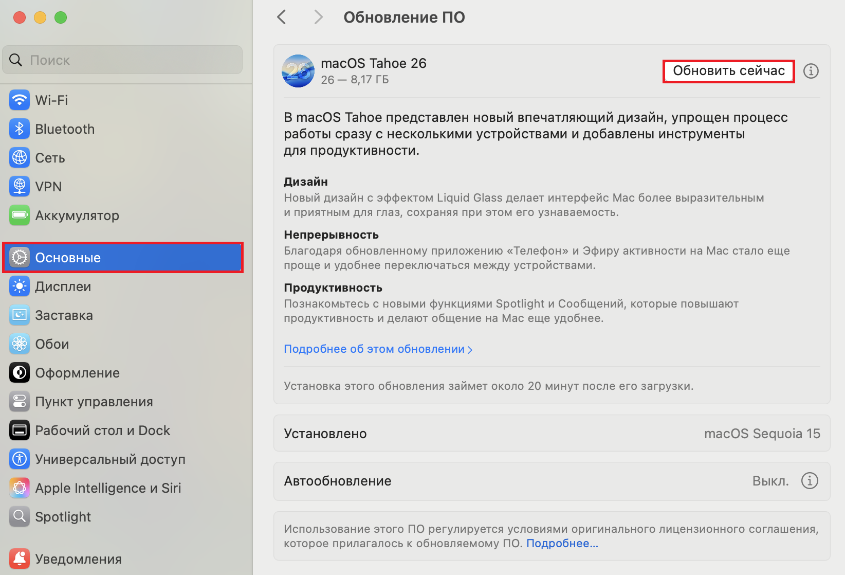 4. Нажмите «Обновить сейчас» или «Обновление ПО».
