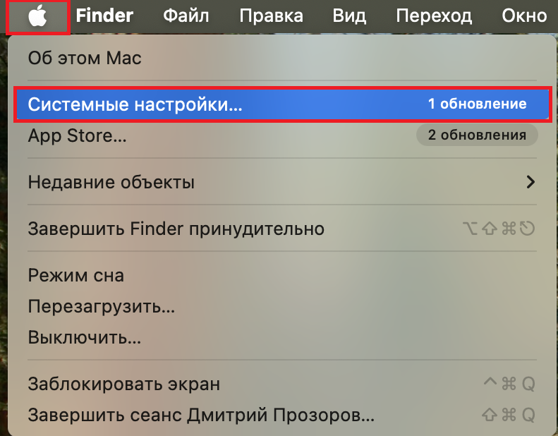 1. В левом верхнем углу экрана нажмите на меню с логотипом Apple и выберите «Системные настройки».