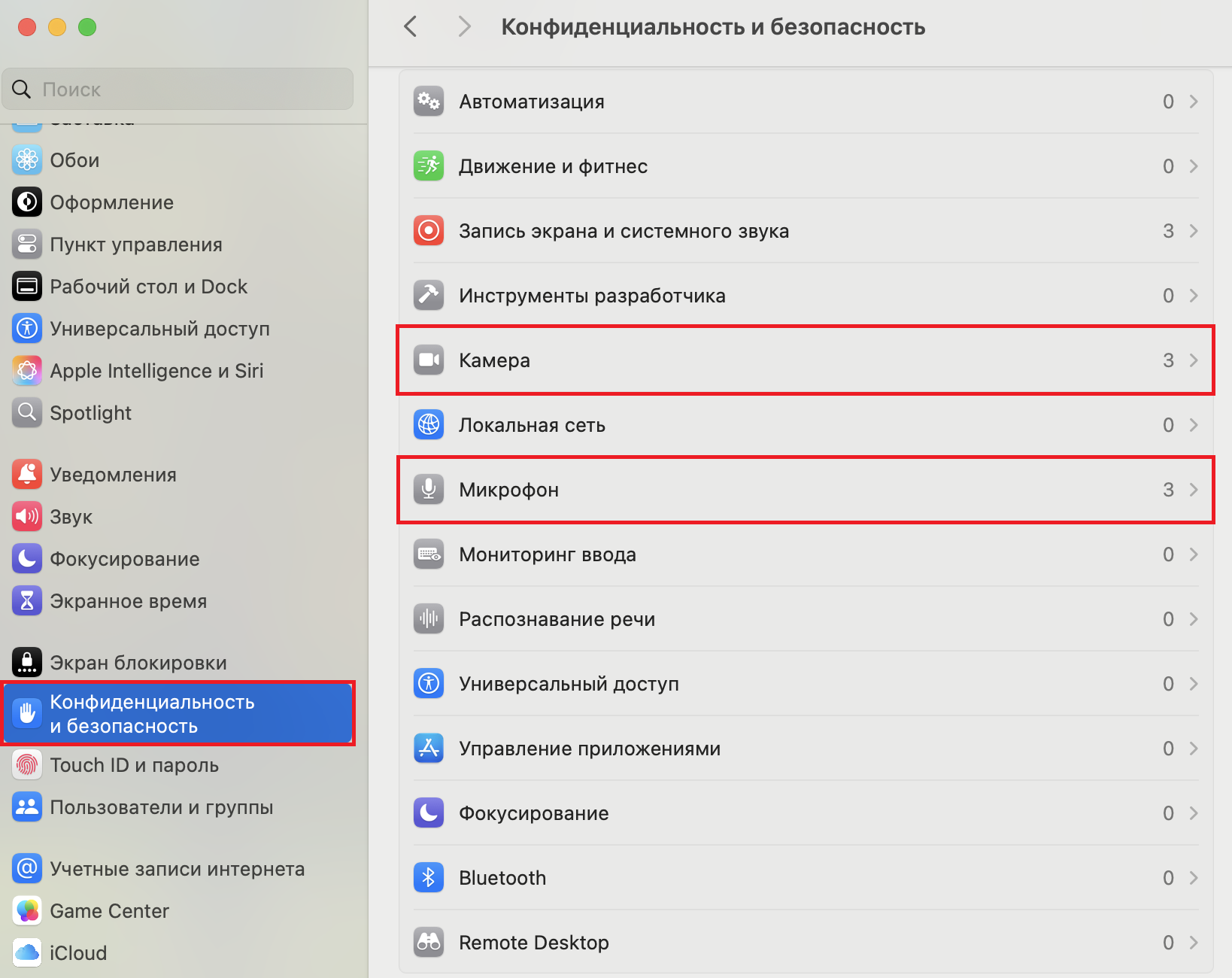 4. В боковом меню выберите нужный пункт: «Камера» или «Микрофон», а затем разрешите доступ ко всем приложениям, которые вы используете для работы на нашей платформе.